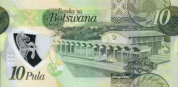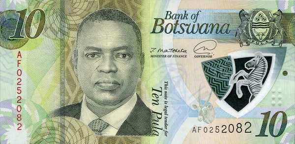 - 10 пул (зеленая): Портрет действующего президента. На реверсе — здание Парламента в Габороне, символ демократии.