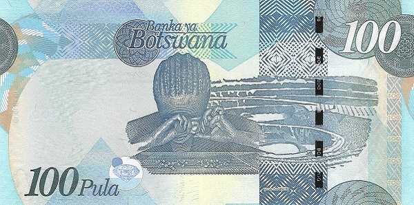 - 100 пул (синяя): Три верховных вождя XIX века — Батоэн I, Себеле I и Кхама III, отстаивавшие интересы народа. Реверс символизирует алмазодобывающую промышленность.