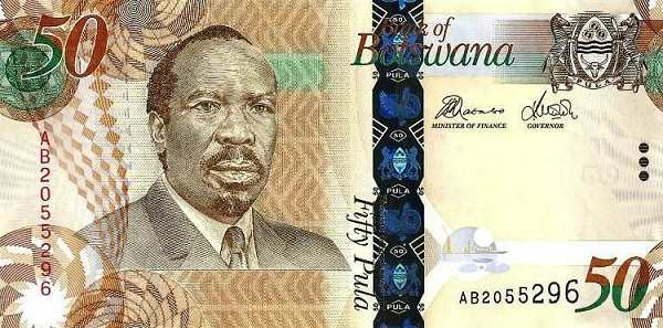 - 50 пул (коричневая): Сэр Серетсе Кхама, первый президент и «отец нации». На обороте — уникальная экосистема дельты Окаванго.