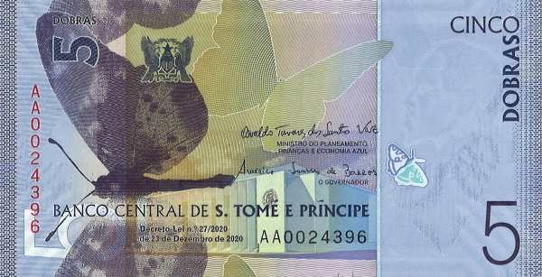 Современные банкноты Сан-Томе и Принсипи отличаются ярким дизайном и передовыми элементами защиты. В отличие от предыдущих серий, где основным мотивом был портрет короля Амадора, на новых банкнотах доминируют изображения бабочек на лицевой стороне и представители местной фауны на оборотной.