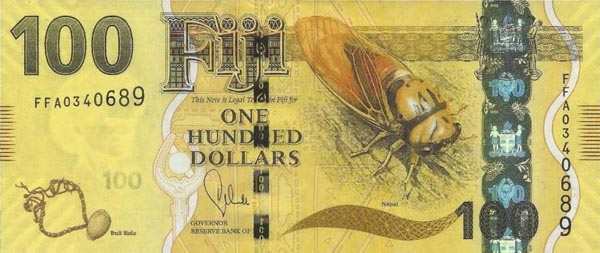 - 100 долларов: Крупнейший номинал. Его дизайн включает изображение цикады (Nanai), а на обороте часто размещают карту архипелага, подчеркивая единство островов.