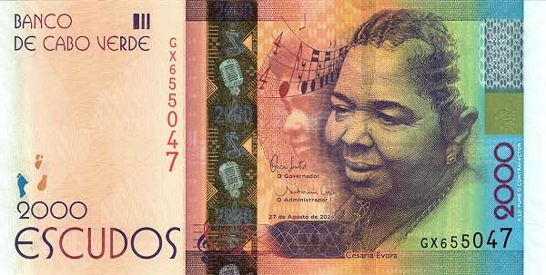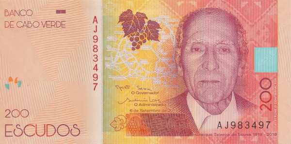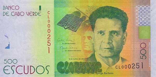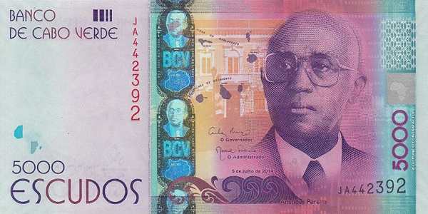 - 5000 эскудо: самая крупная банкнота украшена портретом Эуженио Тавареша, поэта, писавшего на криольском языке.