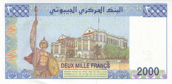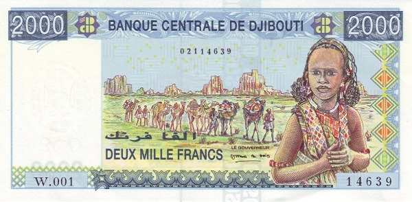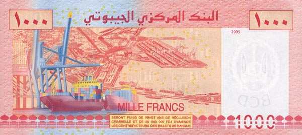 Банкноты: В обращении находятся купюры номиналом 1000, 2000, 5000 и 10 000 франков. Их дизайн посвящен ключевым фигурам национальной истории и важным элементам жизни страны. Так, на банкноте в 1000 франков изображен портрет Али Удума, борца за независимость Джибути, а на 10 000 франков — первый президент страны Хасан Гулед Аптидон. Оборотные стороны банкнот часто украшены изображениями морского порта — «золотого ключика» экономики Джибути.