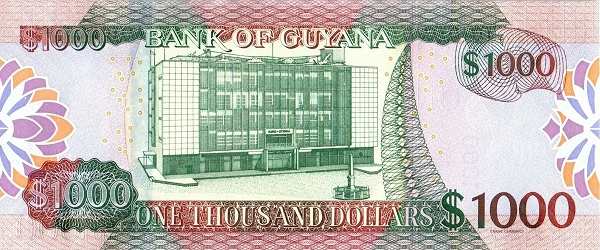 - 1000 гайанских долларов. Посвящена финансовой системе: на обороте изображено само здание Банка Гайаны.