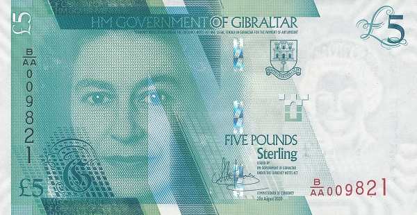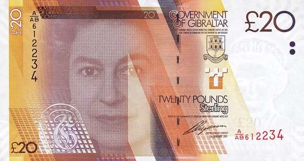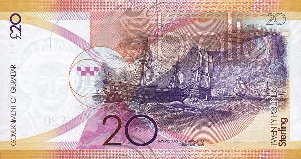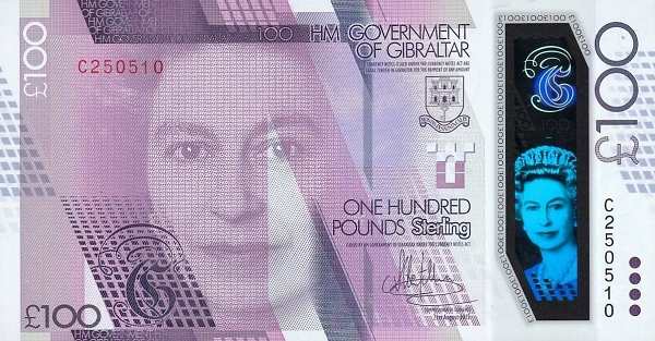 Банкноты традиционно содержат портрет британского монарха на лицевой стороне и изображения значимых мест Гибралтара на оборотной. Например, на современных банкнотах можно увидеть: