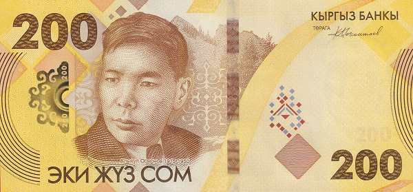 - Банкноты четвертой серии (2009-2010 гг., модифицированные в 2016-2018 гг.): Узнаваемы по портретам, выполненным в классическом стиле ручной гравировки. На просвет на купюрах номиналом от 200 до 5000 сомов появляется слово «СОМ» (элемент Mask).