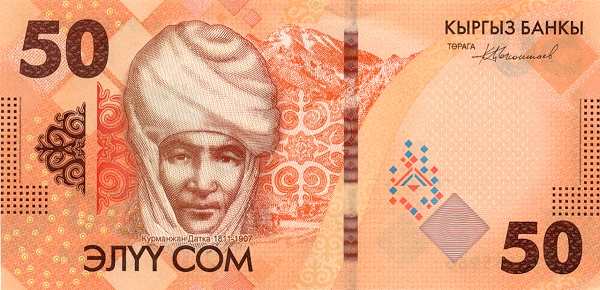 - Курманжан Датка (50 сомов) — «Алайская царица», государственный деятель, признанный лидер.