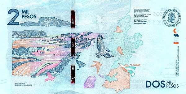 На оборотной стороне банкнот изображены значимые природные и культурные объекты Колумбии, такие как долина Кокора, Сьюдад-Пердида (Потерянный город) в Сьерра-Неваде, колумбийская Амазония и другие.