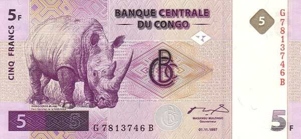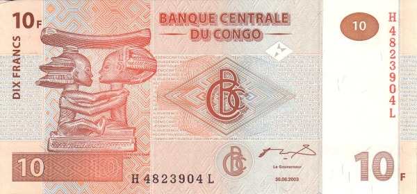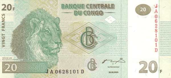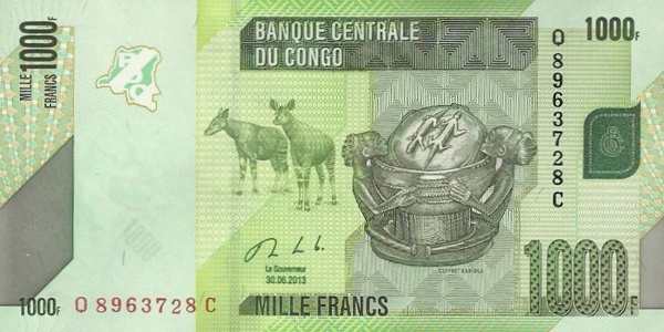 - Возрождение франка (1998 г.): В 1998 году, после прихода к власти Лорана-Дезире Кабилы, страна вернулась к конголезскому франку, который сменил новый заир по курсу 1 франк = 100 000 новых заиров. Эмиссию осуществляет Центральный банк Конго.