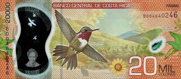 - 10000 колонов: Зеленая банкнота с портретом Хосе Фигереса Феррера, президента, упразднившего армию страны.