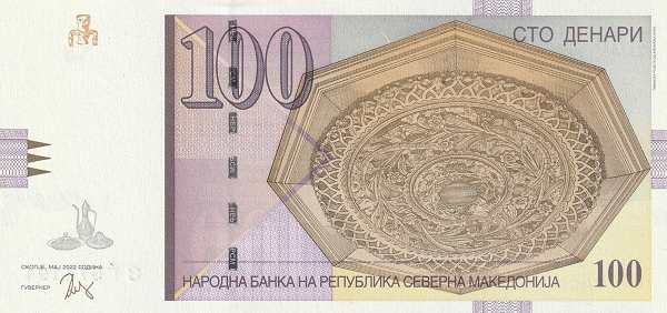- 100 денаров: деревянный потолок в Таунхаус Дебар и город Скопье