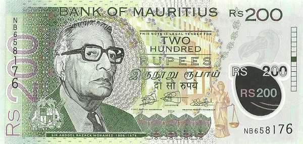 Банкноты маврикийских рупий отличаются ярким дизайном и современными средствами защиты. На лицевой стороне всех номиналов изображены портреты выдающихся маврикийских политических и общественных деятелей: