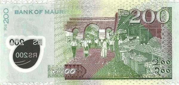 Оборотные стороны банкнот посвящены различным аспектам жизни Маврикия: рыбацкому промыслу, архитектуре столицы, рынкам, образовательным учреждениям и сельскому хозяйству.