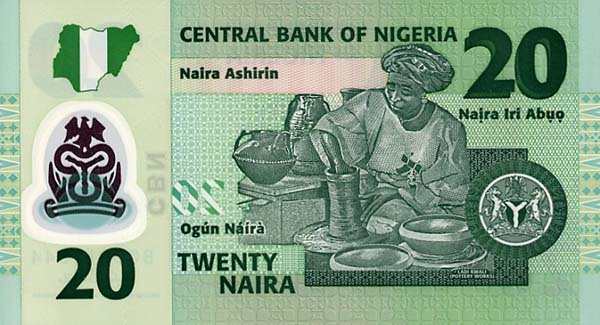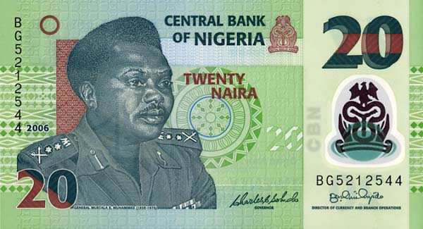 - 20 найр: На этой банкноте помещён портрет генерала Мурталы Мухаммеда (1938–1976), национального героя, президента страны, убитого в результате покушения. Интересно, что банкнота в 20 найр была выпущена в 1977 году, в первую годовщину его гибели, как дань памяти. На оборотной стороне изображена Леди Квали — знаменитая нигерийская гончар, чьи работы получили мировое признание.