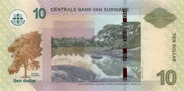 - 10 долларов украшает жёлтый лапачо и река Суринам.