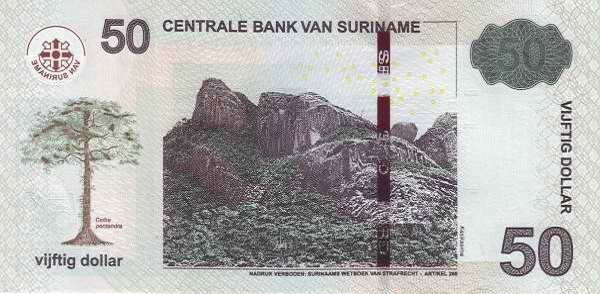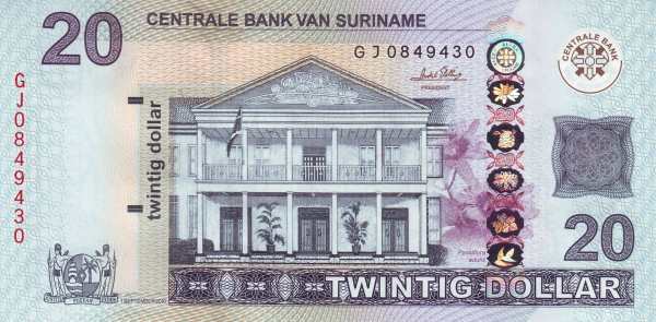 Банкноты суринамского доллара отличаются ярким дизайном с национальной символикой. На них принято использовать единственное число — «доллар», что соответствует голландской языковой традиции.