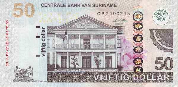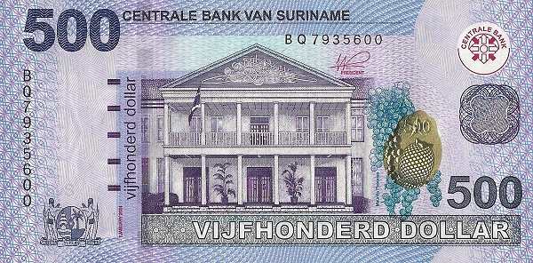 Современные банкноты включают в себя denominations 5, 10, 20, 50 и 100 долларов. В ответ на инфляцию в 2023 году Центральный банк Суринама анонсировал, а к концу марта 2024 года ввёл в обращение новые купюры номиналом 200 и 500 долларов. Это решение было принято для облегчения обращения наличных расчётов в условиях роста цен.