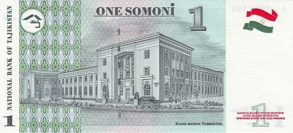 - 1 сомони (Зеленый) — Мирзо Турсун-заде — Здание Национального банка Таджикистана