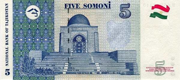 На банкноте в 5 сомони изображен мавзолей Абуабдулло Рудаки, основателя таджикско-персидской классической поэзии, жившего в IX-X веках. Мавзолей расположен в Пенджикентском районе и является местом паломничества для ценителей литературы и истории. Рудаки почитается не только в Таджикистане, но и во всем персоязычном мире.