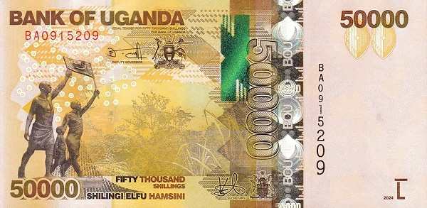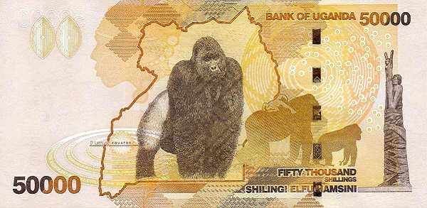 - Банкнота номиналом 50,000 шиллингов была признана Международным обществом банкнот (IBNS) одной из самых красивых в мире. На её лицевой стороне изображён «Монумент Содружества» в Кампале, а на оборотной — знаменитые горные гориллы, ради которых тысячи туристов приезжают в Уганду.