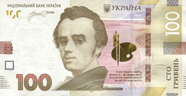 - ₴100: Тарас Шевченко — поэт и художник, ключевая фигура в украинской литературе.