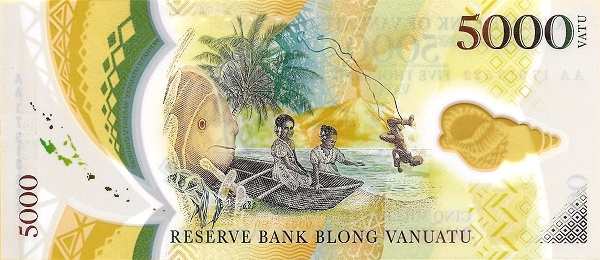 | 5000 Vt | Бумажная банкнота | Дети в лодке, океанская рыба и ныряющий подросток. | Ритуальные прыжки с Пентекоста — прототип банджи-джампинга. |